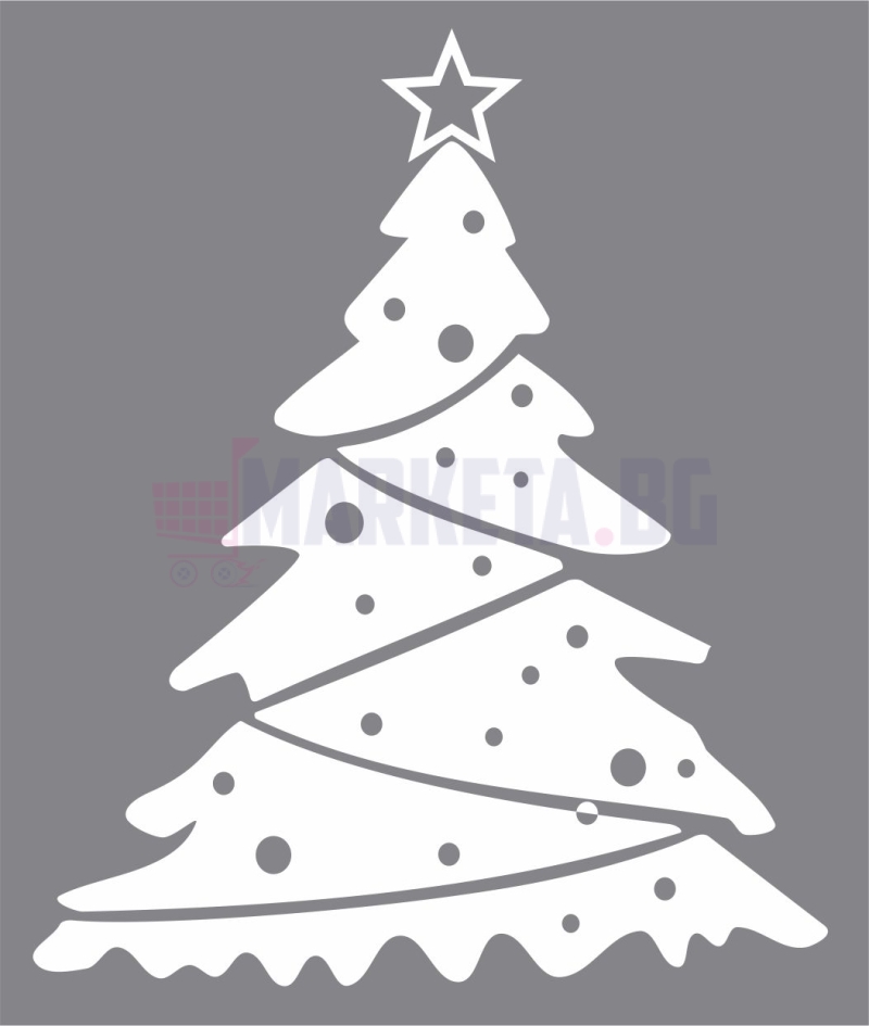 Стикер "Коледна елха" . Размер 80/120 см. Изработва се от рязано по контур ПВЦ фолио с транспортна лента за лесно залепване. Стикера е подходящ за външни условия и се монтира директно на външни стъкла. Препоръчваме закупуване на ракел за залепяне на фолиа при декорация на Коледните витрини. За различни размери и надписи може да се свържете с нас на тел. 02 927 83 83.