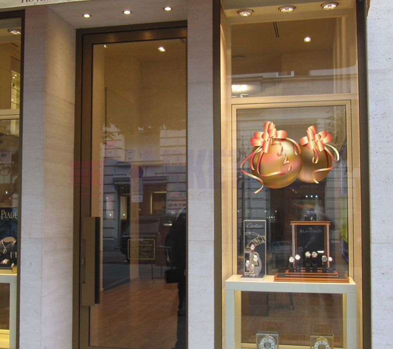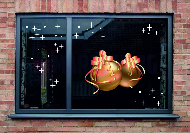 Стикер "Украса" . Изработва се от рязано по контур ПВЦ фолио с транспортна лента за лесно залепване. Стикера е подходящ за външни условия и се монтира директно на външни стъкла. Препоръчваме закупуване на ракел за залепяне на фолиа при декорация на Коледните витрини. За различни размери и надписи може да се свържете с нас на тел. 02 927 83 83.