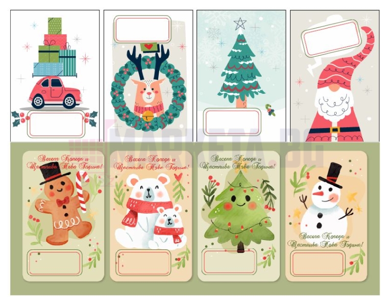 Комплект от 8 бр. коледни етикети.