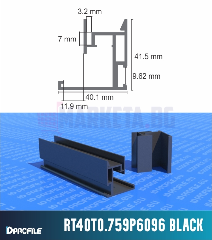 Дължината на профила е 6 м. Посочената цена е за линеен метър. Предлага се в суров вид или черен. При нас профилът може да бъде рязан по Ваш размер на 45 градуса. Срезовете се таксуват по 2,16 лв с ДДС.