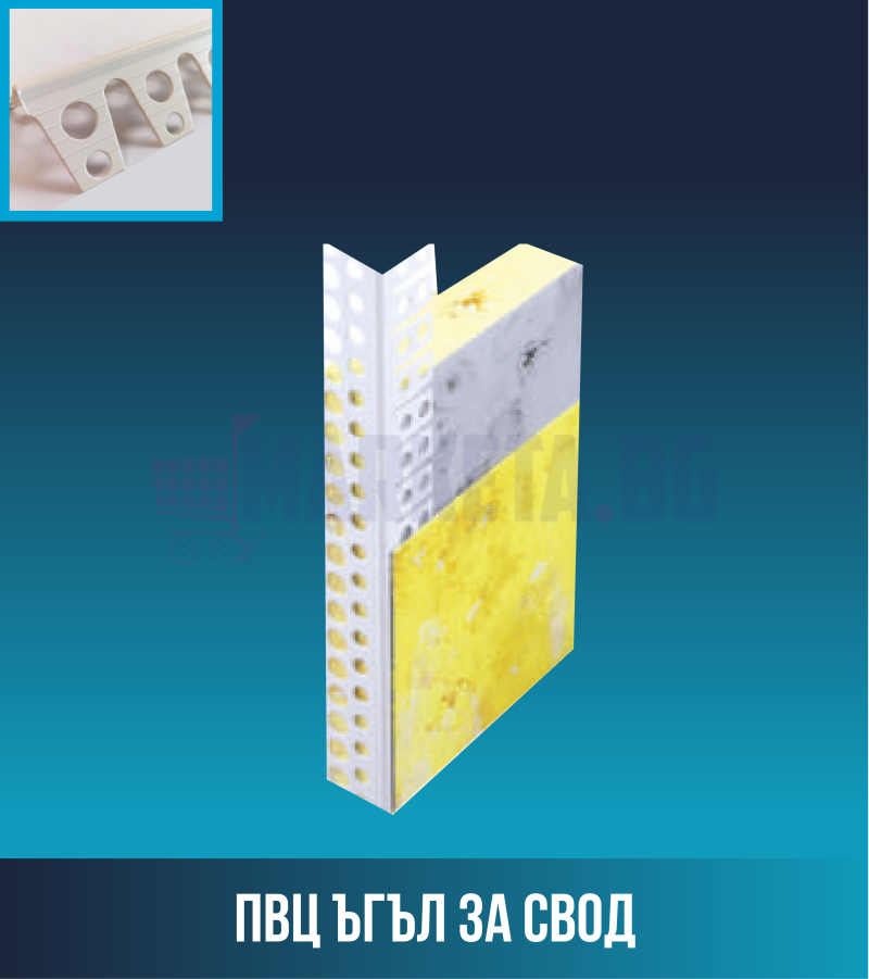 ПВЦ ъгъл за свод. С възможност за огъване и постигане на овална форма по дължината на ъгъла. Предлага се в размер 20x20мм. 2,5м.